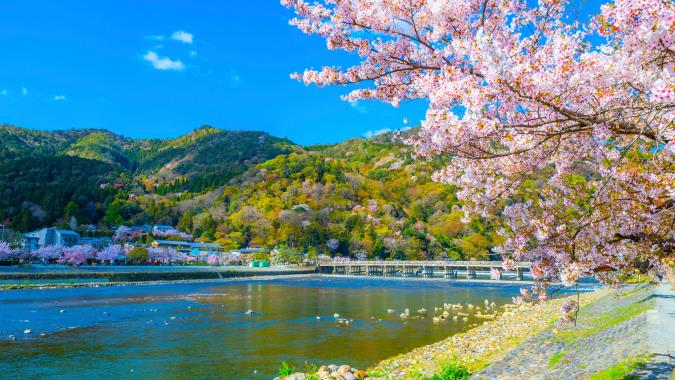 經常作為影劇取景地的《嵐山渡月橋》是到嵐山的必訪景點,全長115公尺,橫跨桂川及中之島公園,因被天皇譽為「在無雲的夜晚,月亮看來彷彿跨越全橋」而得名,四季景色豐富,無論何時到訪,極致美景絕對讓您印象深刻、不虛此行!