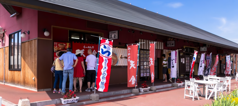 《旭川拉麵村》集結八間北海道超人氣且歷史悠久的拉麵名店,包括山頭火、梅光軒、石田拉麵、天金、工房加藤等,經典的鹽味、味噌、醬油湯底應有盡有,滿足不同的品嘗喜好,吃完拉麵後還能參拜拉麵神社,並購買在地的伴手禮及拉麵哦!
