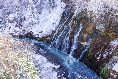 帶您到《青池》的源頭,從地底湧出的水流以磅礡氣勢傾瀉而下,注入美瑛川後呈現鈷藍色樣貌,故有「藍河」美稱,此外,這座日本少有的潛流瀑布四季皆美,夏季新綠、秋楓滿山、冬季結冰的瀑布更是蔚為奇觀。