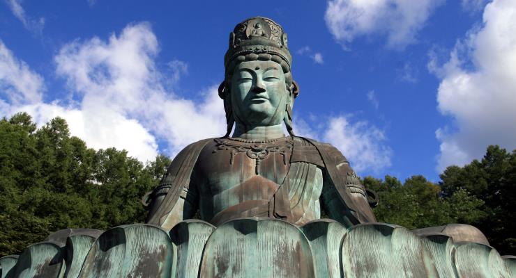 寺內的大日如來建於1984年,是日本最大的青銅坐像,寺內的五重塔為日本第四大,材料選用青森縣的天然羅漢柏,建於1996年。另外,金堂裡的《阿彌陀聖眾來迎圖》、《回望阿彌陀像》是絕對不容錯過的寺寶。